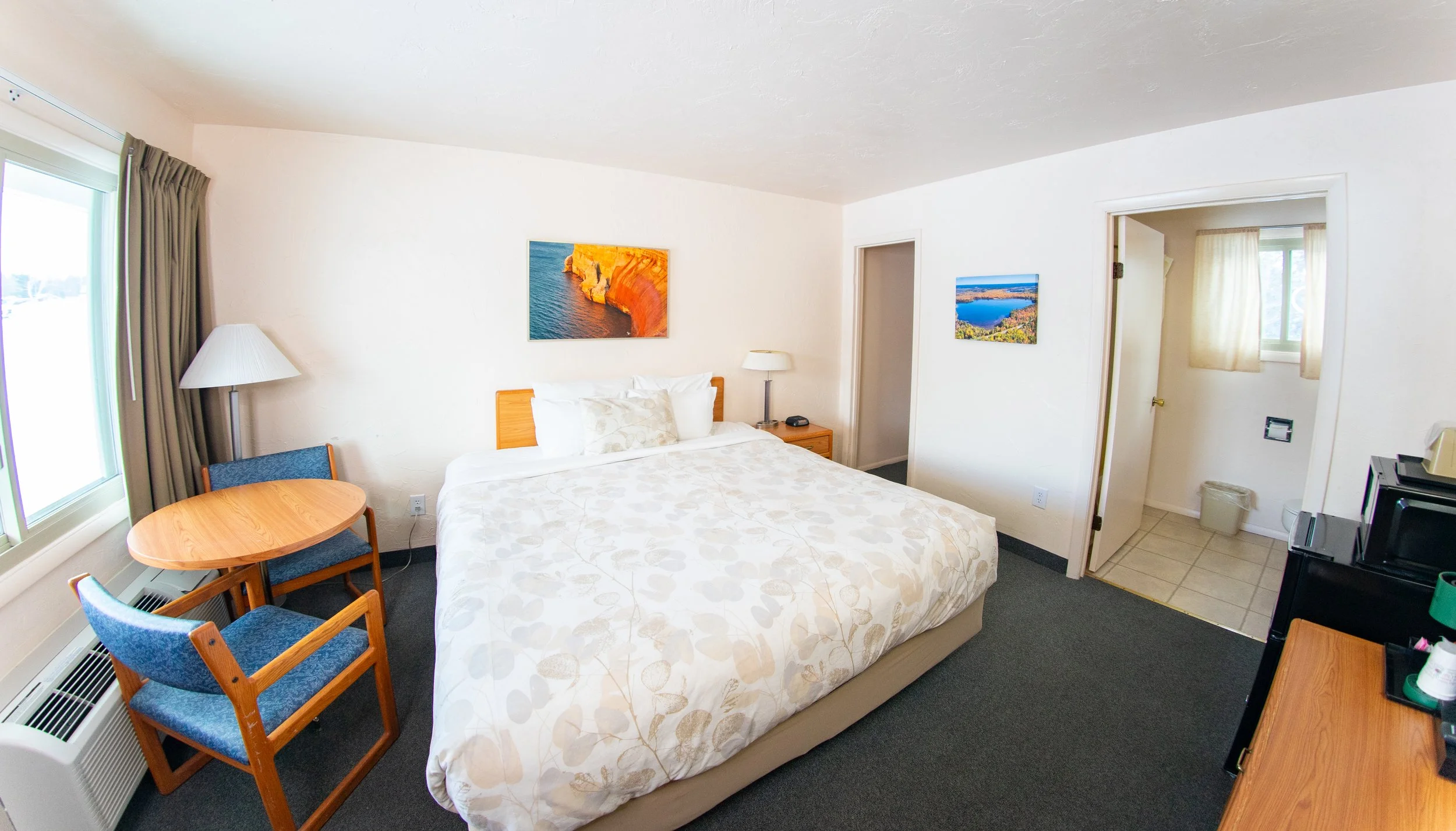 Just minutes from the breathtaking Pictured Rocks National Lakeshore, our cozy motel and cabins provide the perfect basecamp for your Upper Peninsula explorations. Whether you're seeking outdoor thrills or a relaxing retreat, we offer comfortable and updated accommodations with a touch of rustic charm. Located just 2 miles from downtown Munising and 50 minutes from Marquette, you'll enjoy easy access to vibrant breweries, delicious restaurants, and unique shops. Our convenient location off Route 28 also puts you within a short drive of other area attractions like Sand Point Beach and Hiawatha National Forest. At Alger Falls Motel, we're passionate about sharing the beauty of our region. Our friendly staff are can help you discover the best hiking trails, waterfalls, and hidden gems. Choose from our variety of rooms, including king, queen, and double queen options, or enjoy the privacy of one of our fully stocked cabins. We also offer convenient amenities such as free Wi-Fi, cable TV, microwaves, minifridges, and Keurig coffeemakers in every room. Plus, with heated snowmobile garages and pet-friendly accommodations, your comfort and convenience are our top priorities.